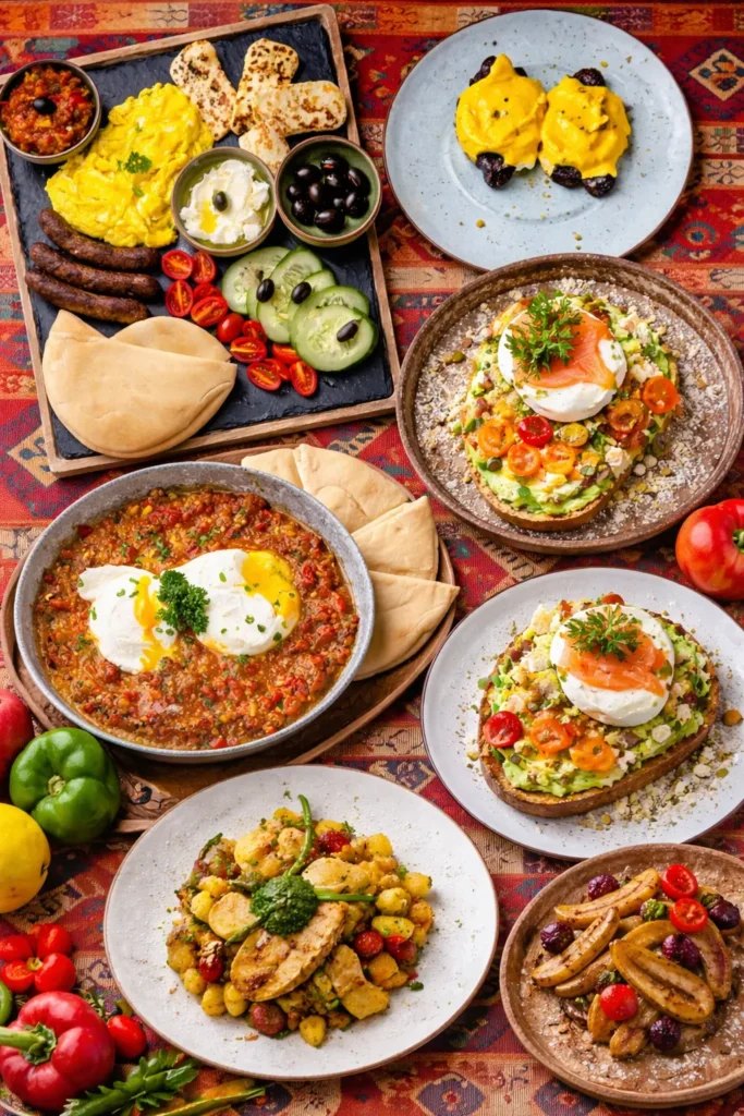 Middle Eastern Breakfast – A traditional Middle Eastern inspired breakfast served with sausage, scramble egg, pita bread, tomato salsa, labneh and a selection of flavorful accompaniments.